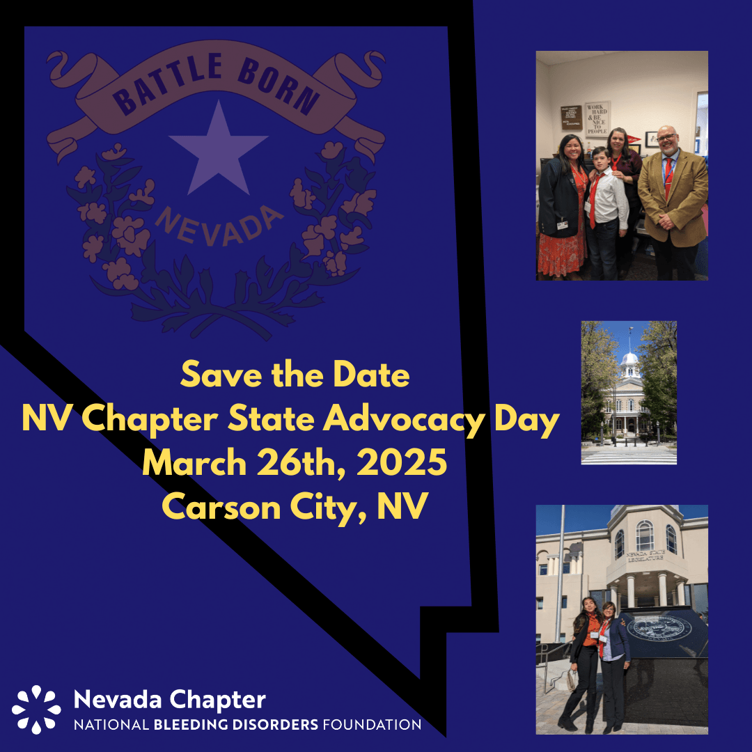 State advocacy days are one of the major highlights of local chapter advocacy programs. NBDF Nevada's State Advocacy Day occurs in odd-numbered years and includes volunteer representatives from the entire state of Nevada. Volunteer representatives include individuals with a bleeding disorder and/or their family members, community volunteers, and other organizations. We come together to host a day at the state capitol. The event usually consists of a training session where we provide talking points and engage in role-playing activities. Training is followed by a day at the capitol where volunteers meet with their elected officials to educate them about hemophilia, von Willebrand disease, and other related bleeding disorders. Constituents may visit representatives for various reasons, including to educate them, build relationships, thank them, and advocate for or against a piece of legislation.