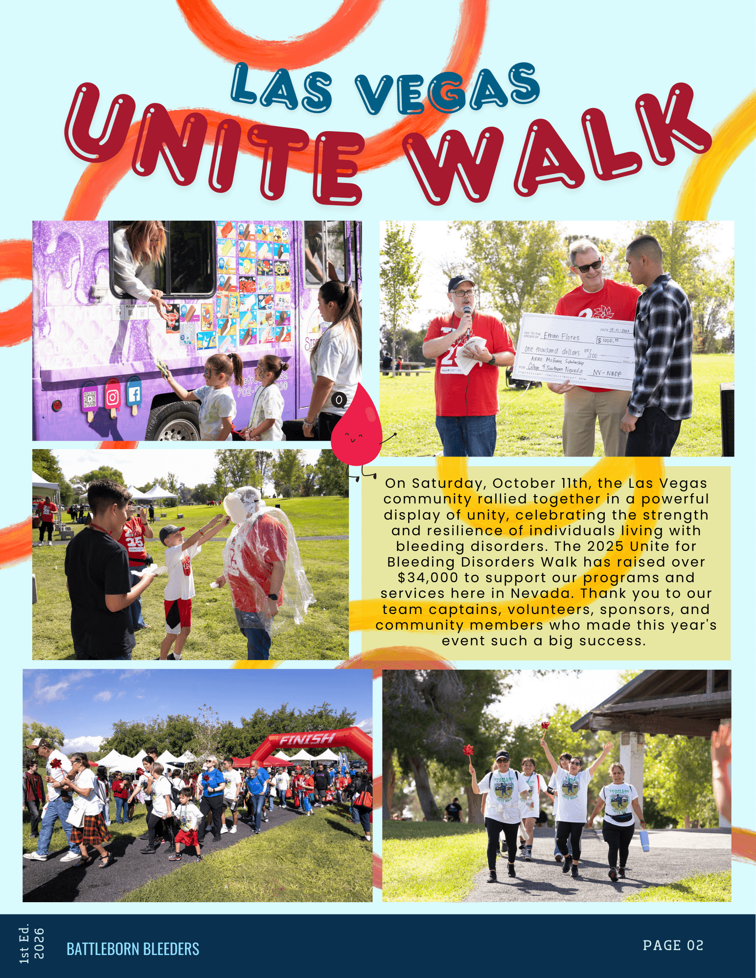 Unite for Bleeding Disorders Walk is an annual community event that celebrates the resilience, dedication, and perseverance of the bleeding disorder community in Nevada. This important event also raises vital funds needed to allow our organization to continue to fulfill its mission of providing education, support and advocacy for people in Nevada. Each year, community members, their families, friends, supporters, local businesses and our industry partners unite together to support each other and build a stronger community.